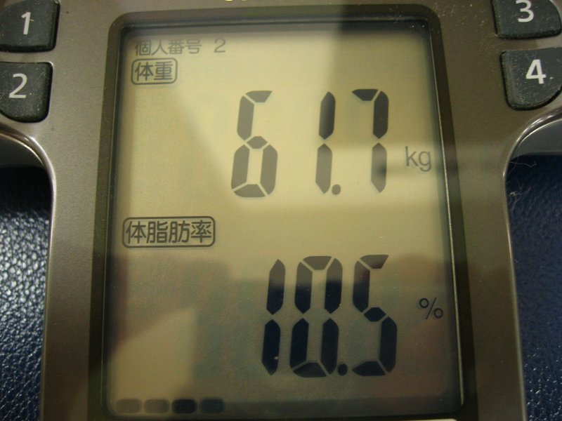 体重:61.7kg,体脂肪率10.5%