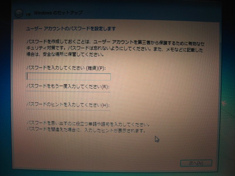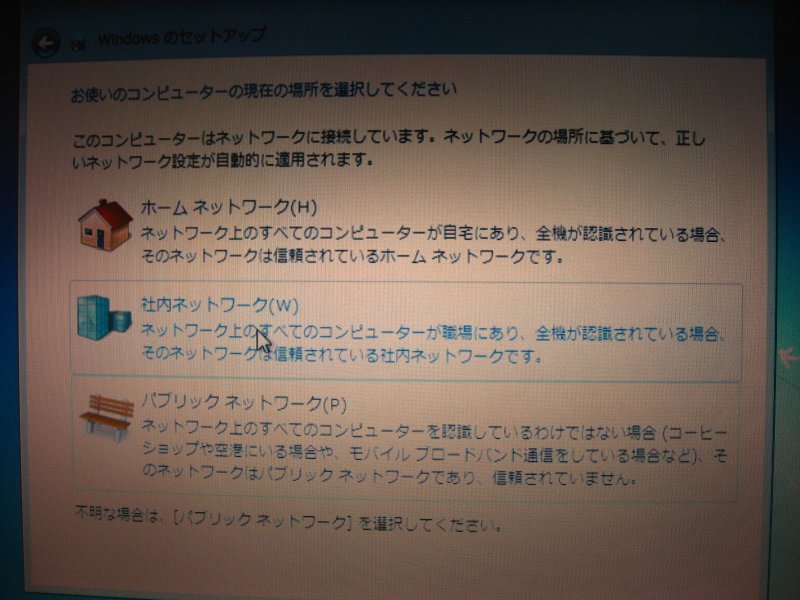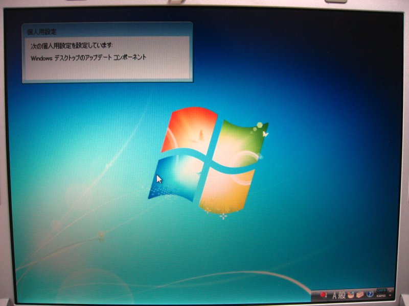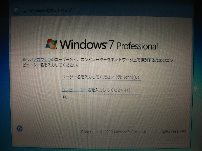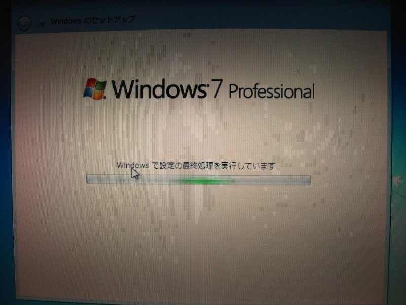 Windows7 Professional 初期セットアップ画面。
