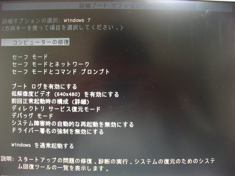 Win7の詳細オプション。
