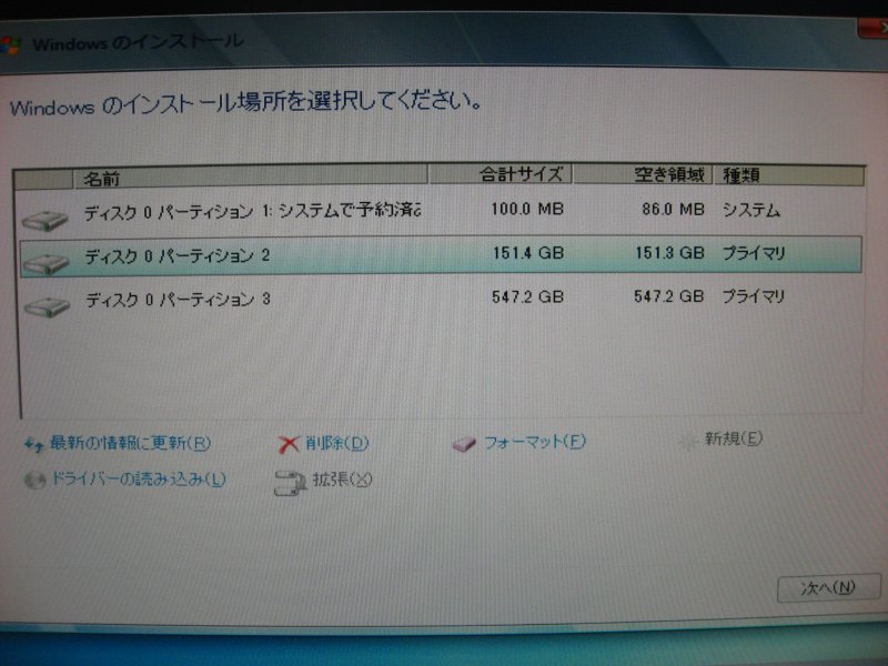 パーティションは自分好みで区切ってます。