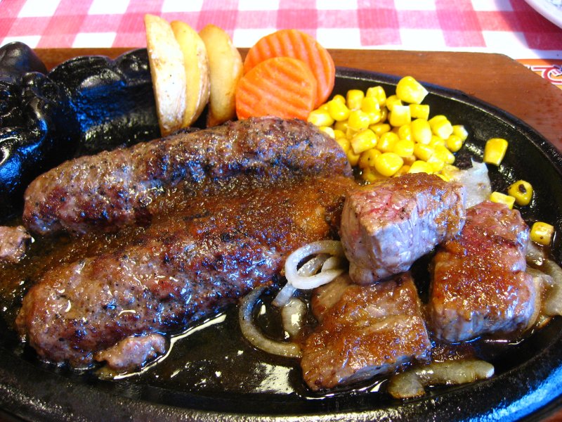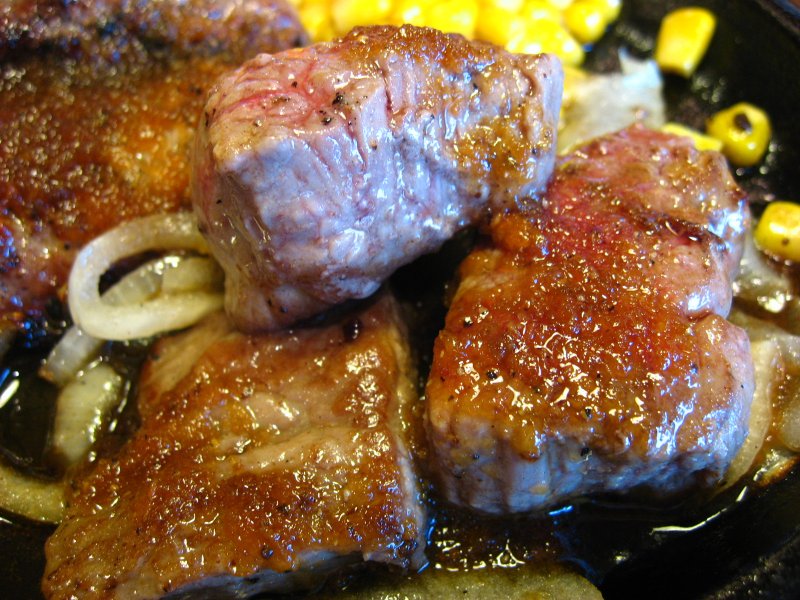 今回は炭焼きがんこハンバーグ+角切りステーキのセットを注文。