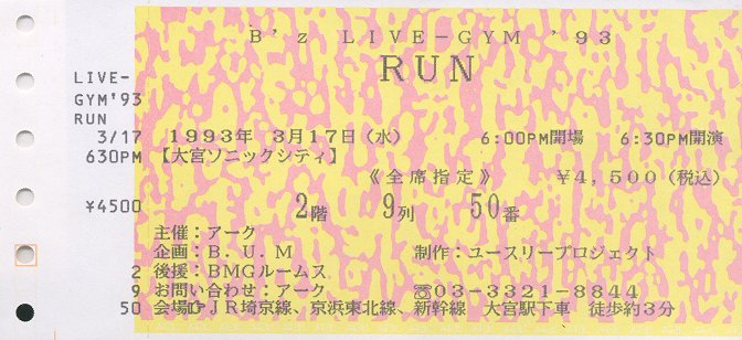 ●B'z LIVE-GYM'93 RUN 大宮ソニックシティ
