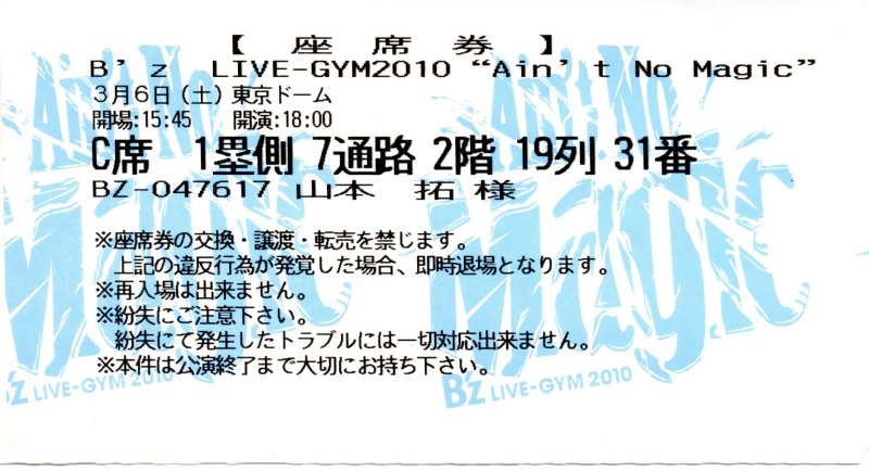 ヤフオクなどの転売対策の為、B'zライブのチケットの仕組みは少し複雑(面倒)になりました。