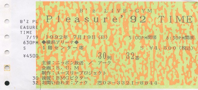 ●B'z LIVE-GYM Pleasure'92 TIME 横浜アリーナ