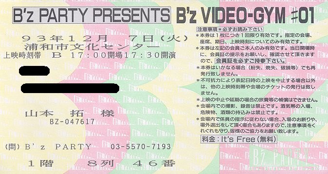 ●B'z PARTY PRESENTS B'z VIDEO-GYM#01 浦和市文化センター