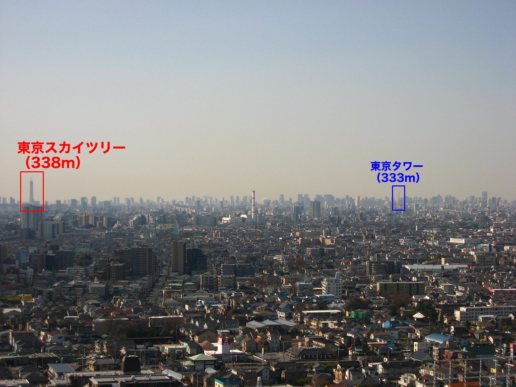 我が家からは幸運にも東京スカイツリー(338m)と東京タワー(333m)を