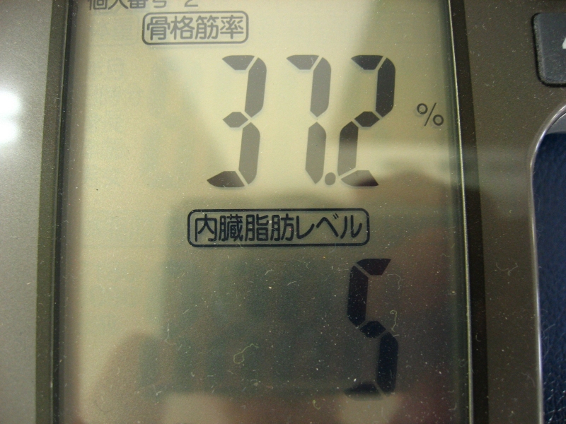 骨格筋率:37.2%、内臓脂肪レベル:5 (前回:36.5 / 5)