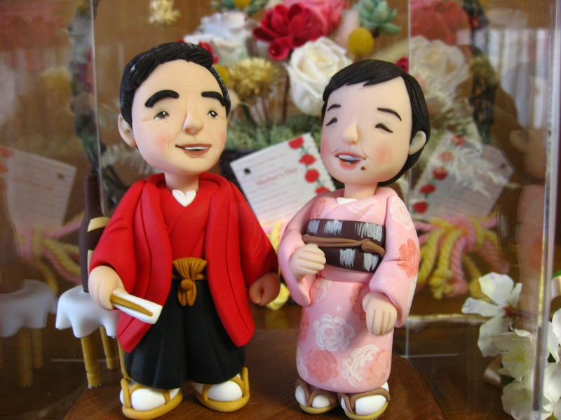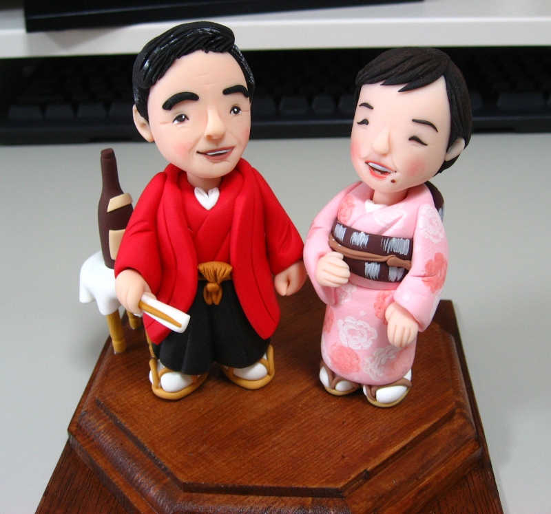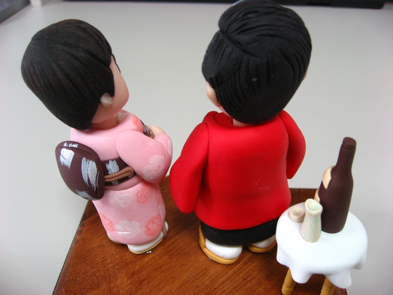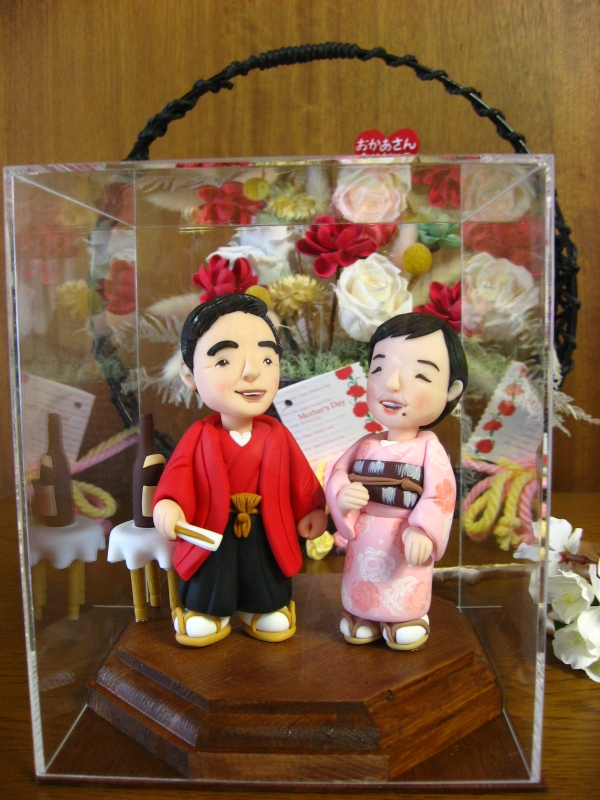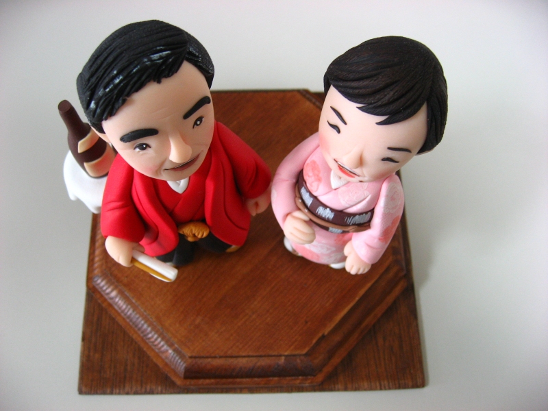 後ろから。お酒が父らしいです(←こちらは人形2体の場合サービス品)