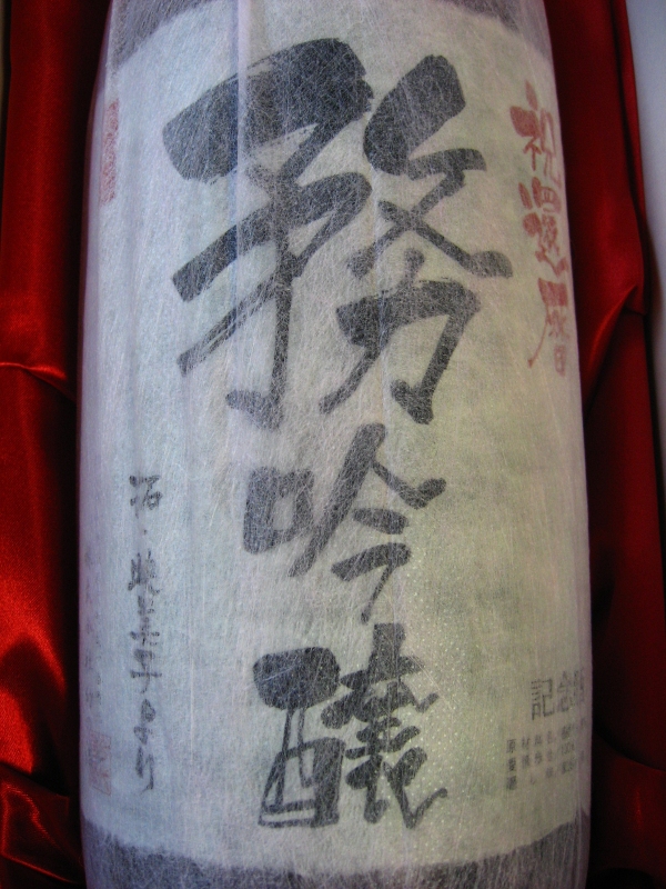 金箔の入った真紅の純米大吟醸にオリジナルラベル。