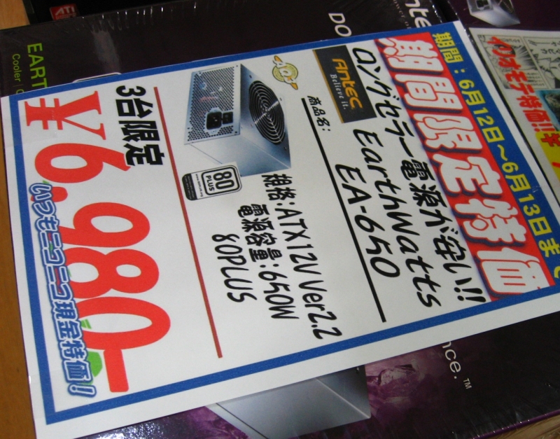 [電源]Antec EarthWatts EA-650 / 6980円(3台限定)