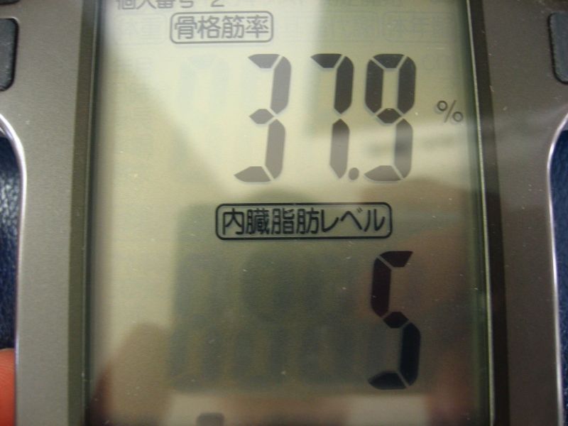骨格筋率:37.9%、内臓脂肪レベル:5 (前回:37.9 / 5)