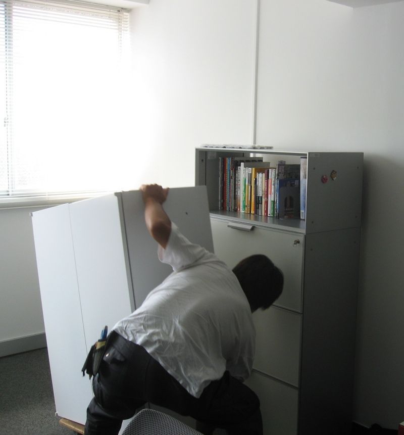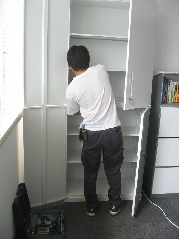 中古オフィス家具Happyの方が組み立て中。