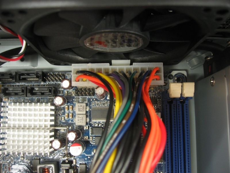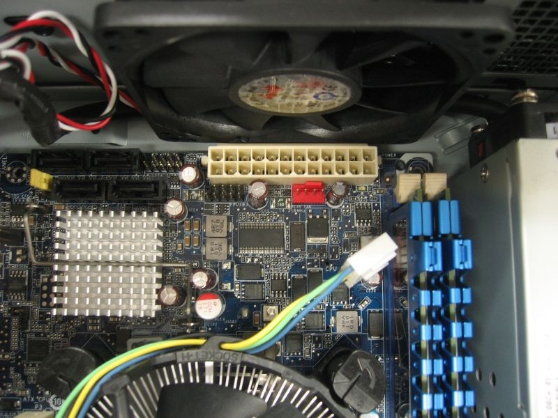 ケースファンとマザーの電源コネクタ部分が見事に干渉してます…。