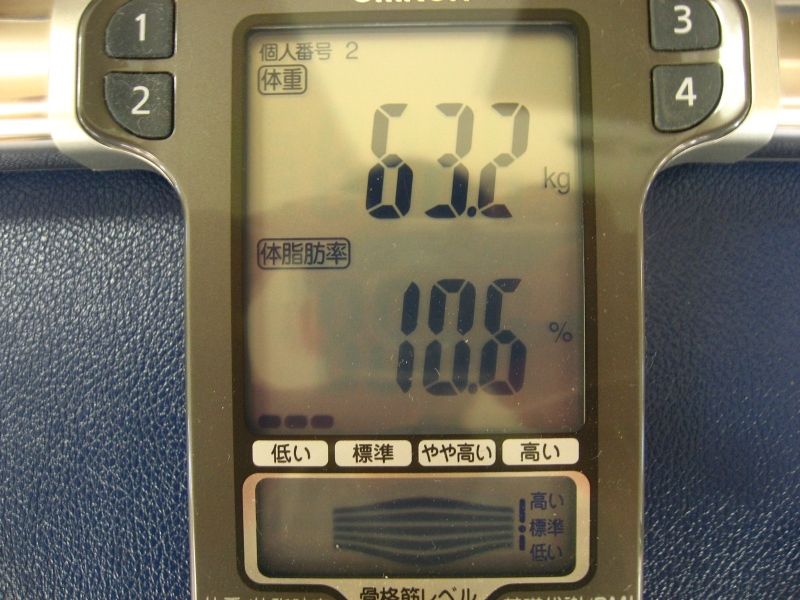 63.2kg,体脂肪率:10.6% (歴代最高記録:7.9%)