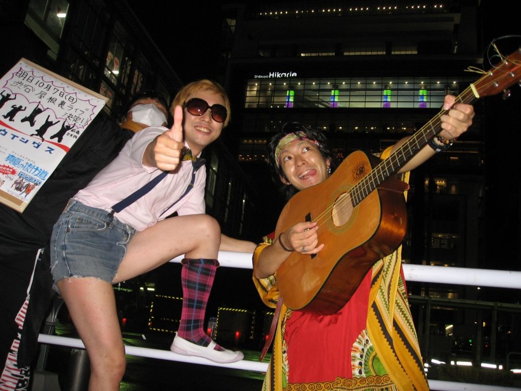 上のKey'nイナブロウ(高坂)が渋谷の路上ライブに適した場所を案内した