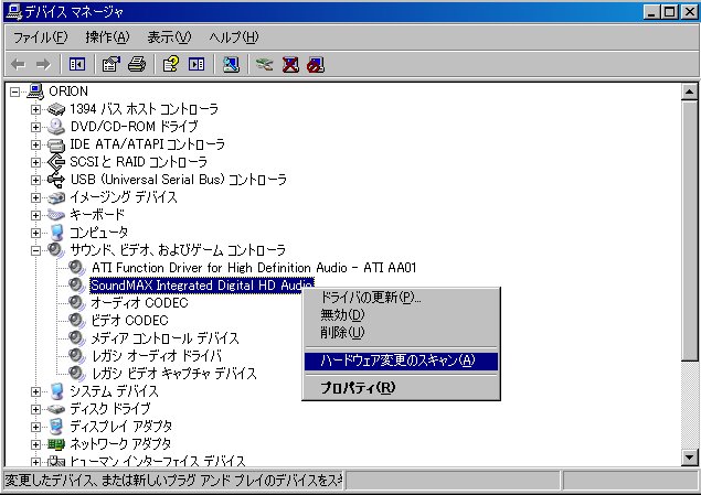 ●4. デバイスマネージャでハードウェア変更のスキャンをかける