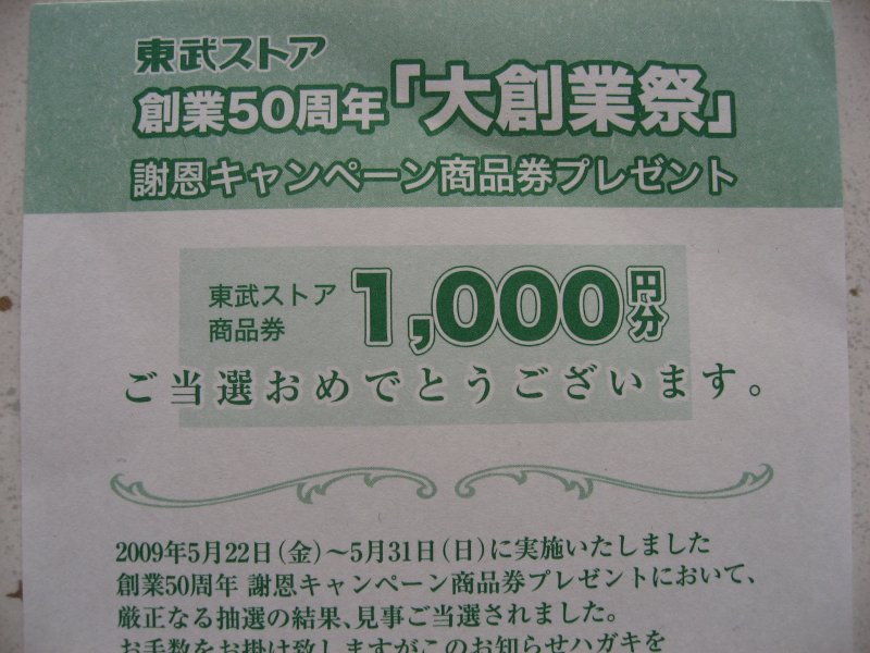 東武ストア創業50周年「大創業祭」謝恩キャンペーン商品券プレゼント 2009年07月06日 カテゴリ:一般日記 mixiチェック 嬉しい誤算。 ご近所スーパーのキャンペーンで商品券をゲットしました!! 1000円ですが嬉しいです☆ でもその裏でキャンペーンに応募する為に 6000円(3000円x2口)使ってるのはここだけの話です。 1等5000円の当選確率はごくわずか。 見事店の戦略にやられましたね(笑) タグ :#東武ストア#創業50周年#大創業祭#商品券 「一般日記」カテゴリの最新記事 人気記事ランキング コメント コメントする コメントフォーム 名前 コメント 評価する リセット リセット 顔 星 投稿する 情報を記憶 トラックバック