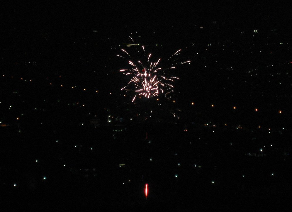 先ほどのお祭り会場近くの夜空が花火で彩られていました。