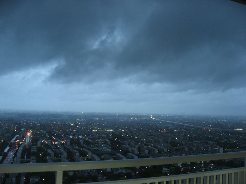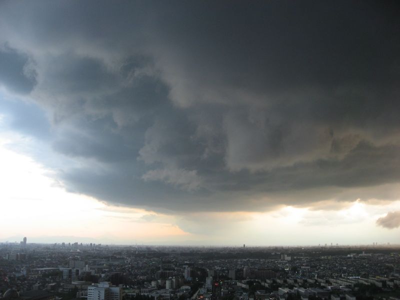 バルコニーから外を眺めていたら、雲の動きが怪しいので