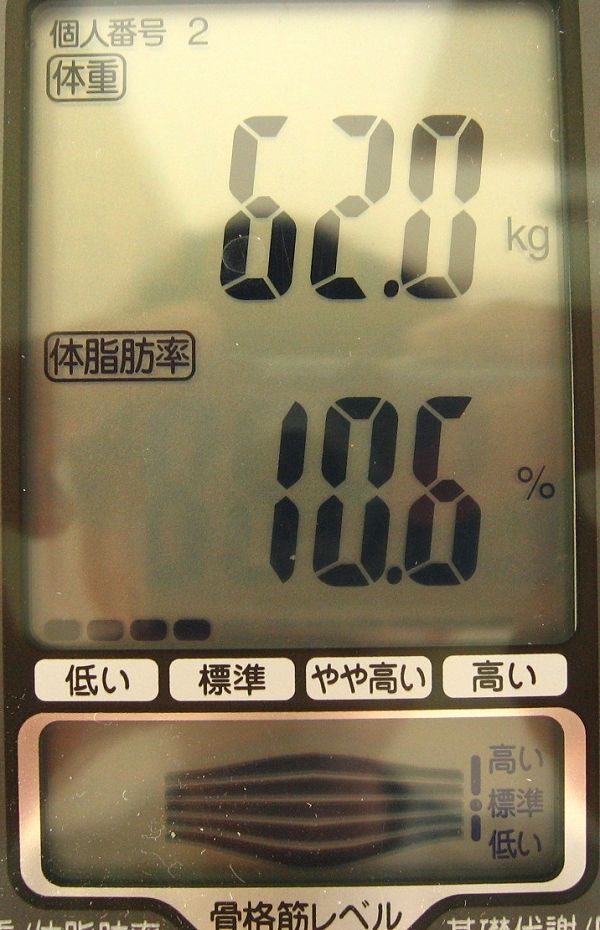 なんとか週イチでジムに通ってます! 2010年09月26日 カテゴリ:ジム(EBTトレーニング) mixiチェック さり気なく毎週末に通っているジム。 恒例のカラダスキャン測定! 体重:62.0kg,体脂肪率:10.6% (歴代最高記録:7.9%) 骨格筋率(メーター表示):5/6 基礎代謝:1532kcal,BMI:21.0 骨格筋率:37.6%、内臓脂肪レベル:5 体年齢:25才 ⇒ 安定した数値です! 種目詳細。 【なんとか週イチでジムに通ってます!】の続きを読む タグ :#ジム#トレーニング#体脂肪率#腹筋#お腹