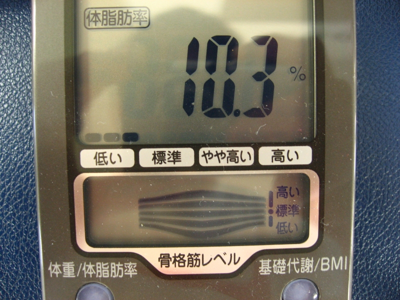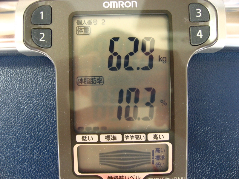 体重:64.0kg,体脂肪率:12.9% (前回:63.7kg / 11.3%)