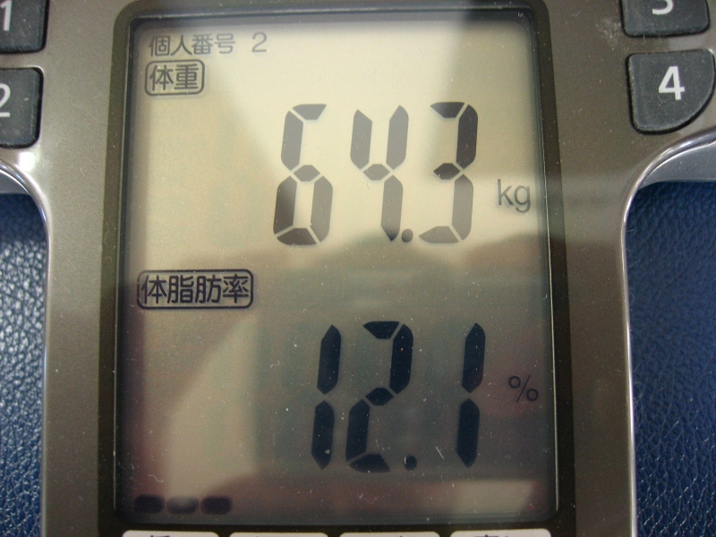 体重:62.4kg,体脂肪率:11.1% (歴代最高記録:7.9%)